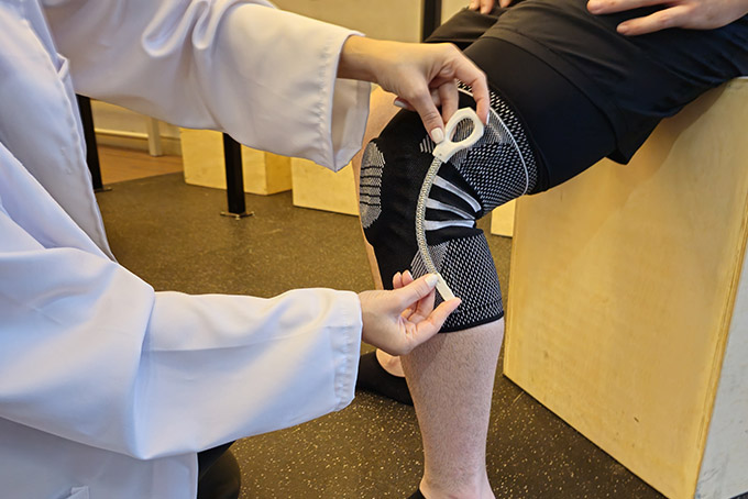 Durante a fisioterapia, o especialista dele apresentou umas joelheiras inovadoras chamadas LegFix.